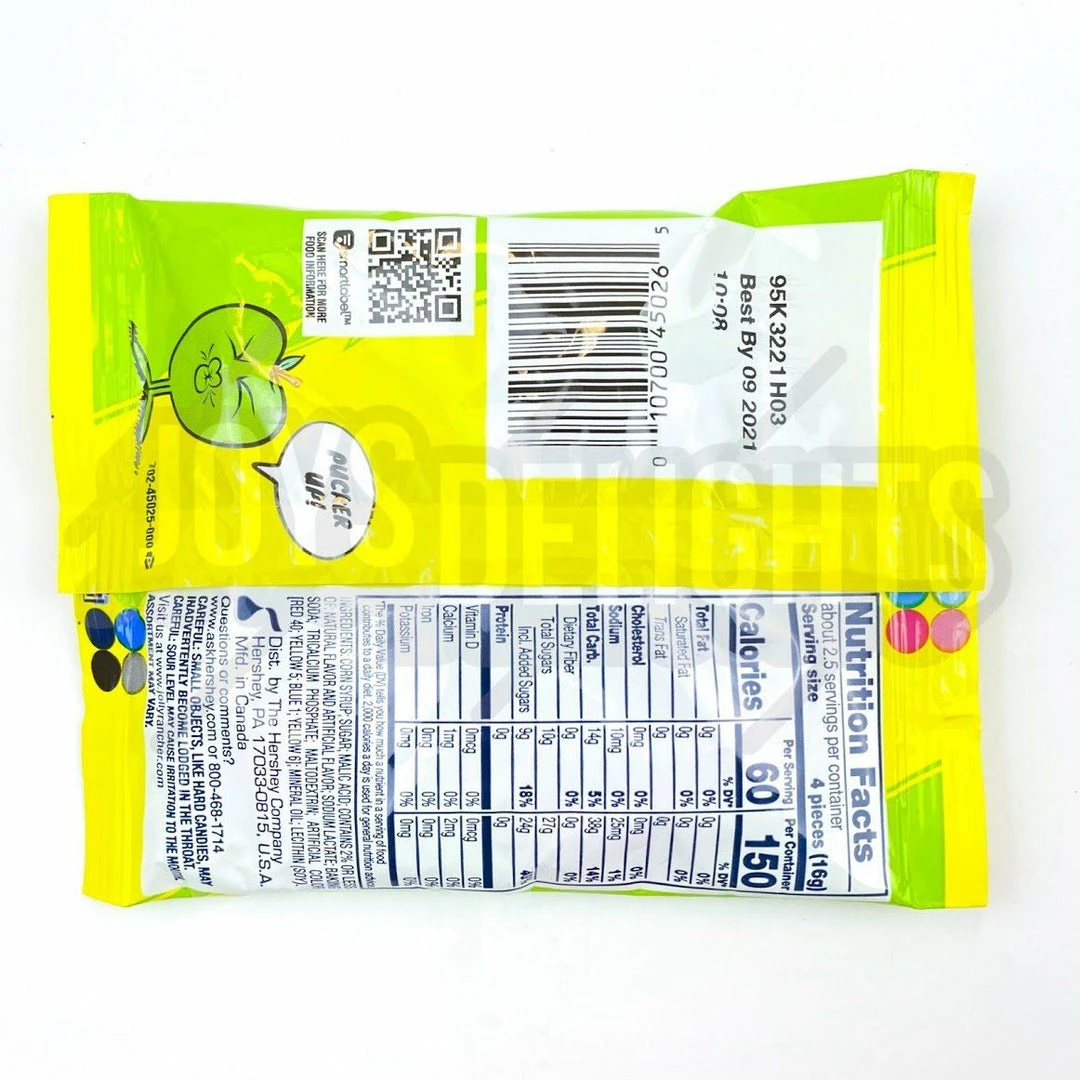 Ingredients: Corn Syrup, Sugar, Malic Acid, Contains 2% or less of Natural & Artificial Flavour, Sodium Lactate, Baking Soda, Tricalcium Phosphate, Maltodextrin, Artificial Colours (Red 40, Yellow 5, Blue 1, Yellow 6), Mineral Oil, Soy Lecithin.