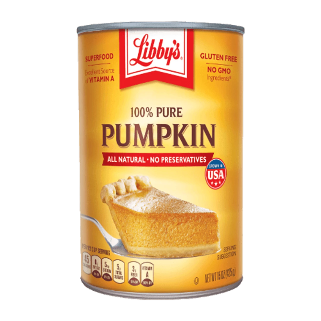With LIBBY’S® 100% Pure Pumpkin, that’s what you’re getting: Pure pumpkin with nothing added. It’s all-natural, gluten-free, no GMO Ingredients.* *SGS verified the Nestlé process for manufacturing this product with No GMO ingredients sgs.com/no-gmo.