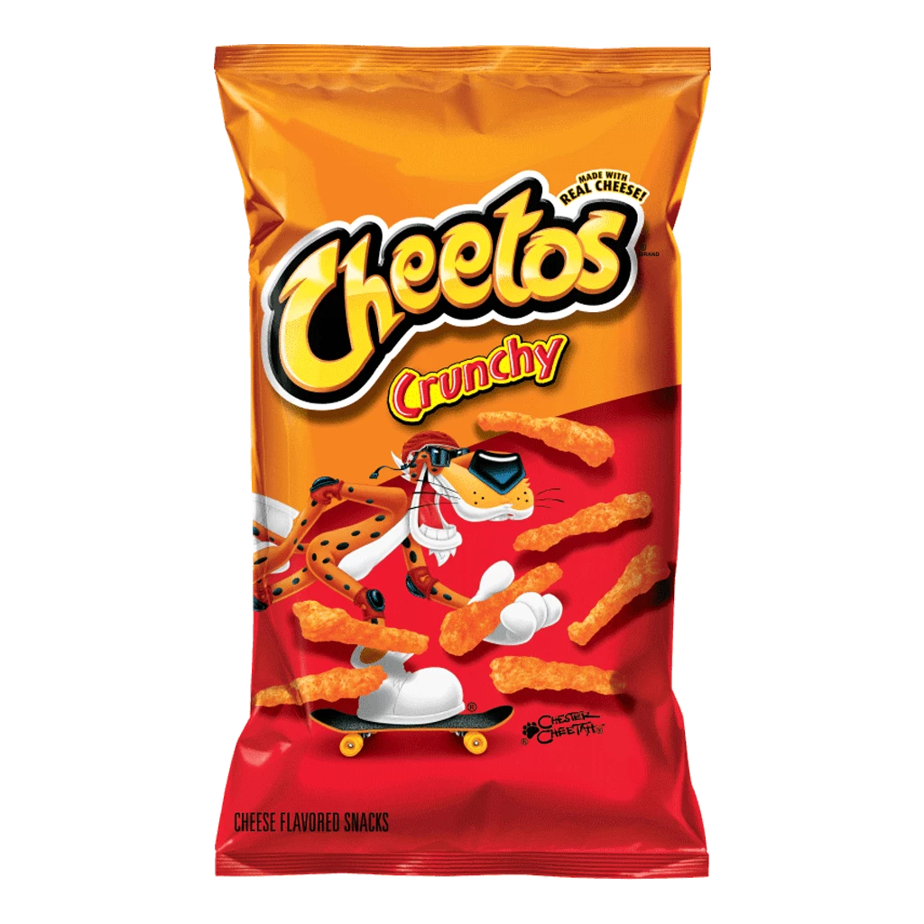 Cheetos Crunchy corn snacks are deliciously cheesy and perfect for enjoying on the go! Made with real cheese and zero grams of trans fat, these snacks are a guilt-free snack. Cheetos are a classic, cheesy treat that are fun and delicious for everyone! Make sure you lick the dust from your fingers! BEST BEFORE 30/09/2022