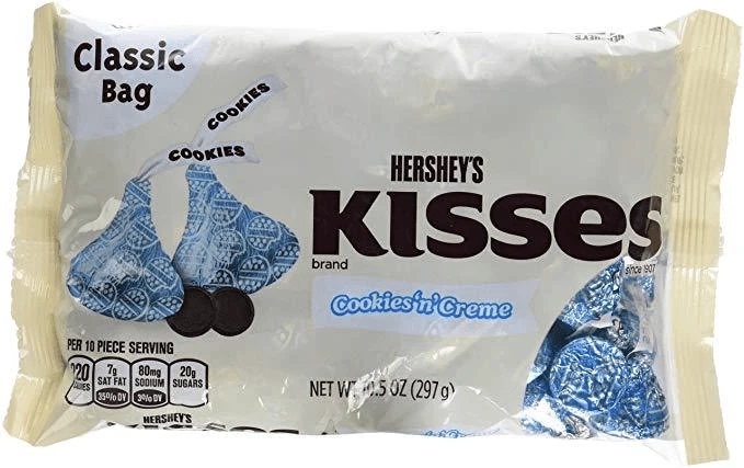 Hershey’s Kisses Cookies & Cream are made with white chocolate and chocolate cookie bits to bring you another sweet chocolate treat in the classic Kiss shape!