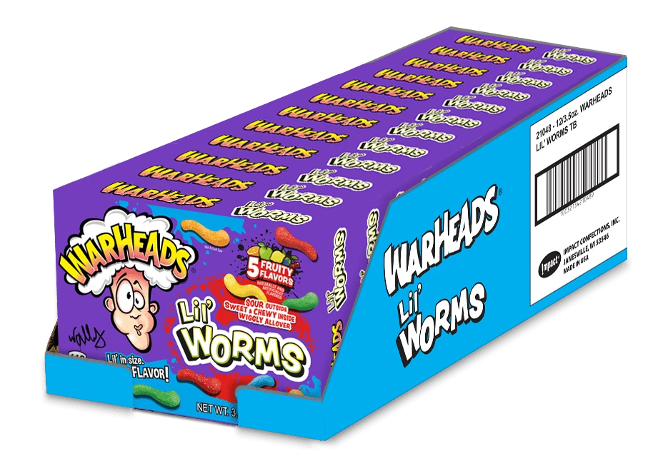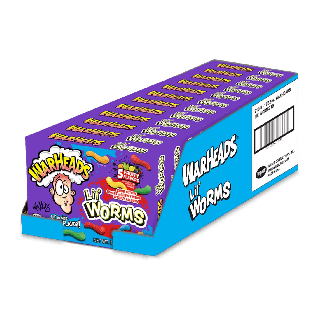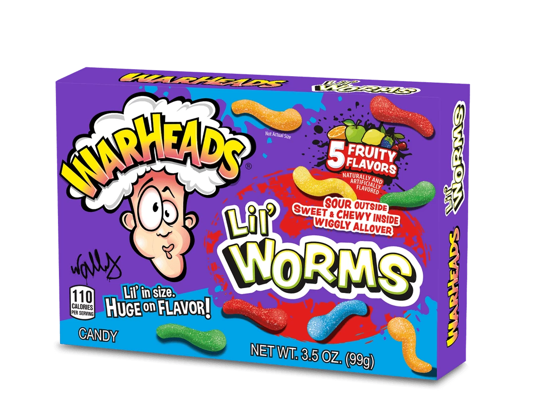 The legendary Warheads Sour Worms are sour, chewy, sweet and fruity gummy candies! These Lil’ Worms may be mini in size, but beware, each one withholds a mega sourness!